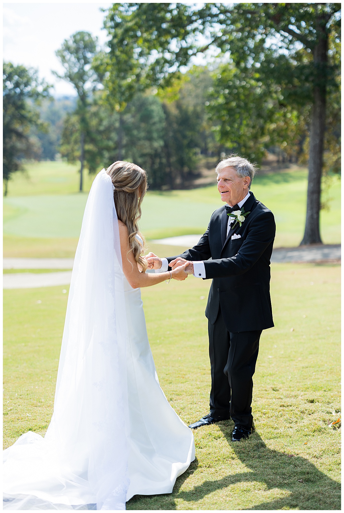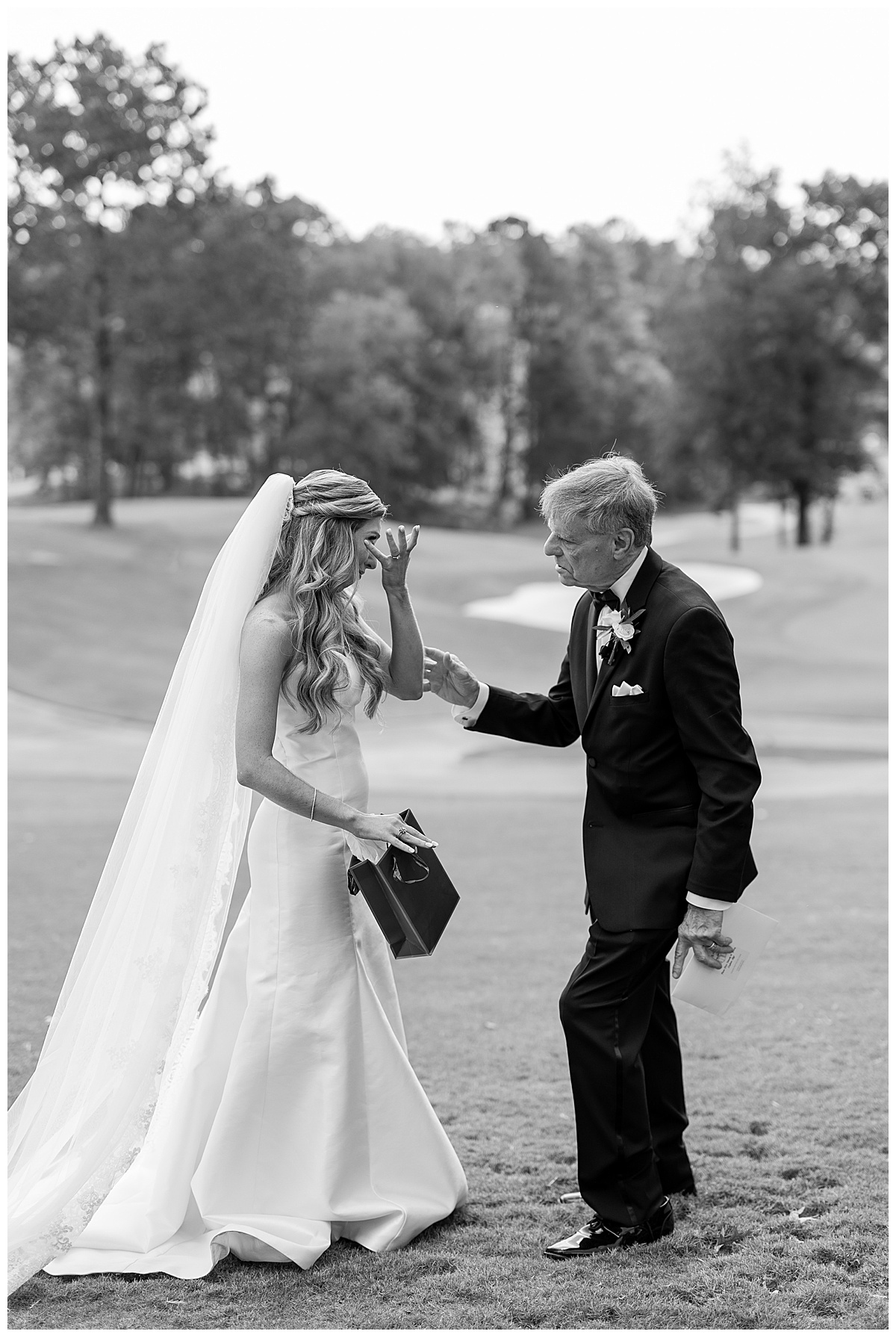 Once Rebecca slipped into her gown, she and her dad shared the most heartfelt first look out on the golf course. The breeze, the morning light, the backdrop…it all came together, and the tears started immediately, a theme that would continue throughout the day!