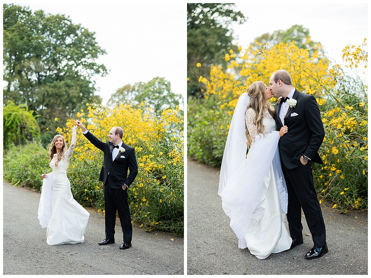 After their beautiful ceremony, we had a two-hour window before cocktail hour began back at Pine Tree Country Club, which meant bonus portrait time! We drove first to Crest Road, where the most vibrant yellow flowers were blooming!